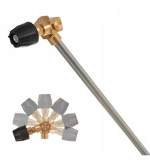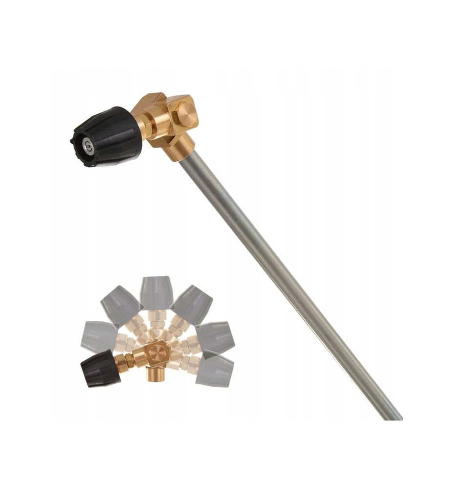 Oferujemy Państwu uniwersalną regulowaną lancę wraz z dyszą do urządzeń wysokociśnieniowych Karcher z serii domowej "K". Lanca wyposażona jest w regulowany przegub umożliwiający płynną zmianę kąta położenia dyszy. Szeroki zakres pracy przegubu (+/-190°) umożliwia dotarcie do trudno dostępnych miejsc. Lanca posiada system mocowania akcesoriów (dysze rotacyjne, przestawne, do pary, szczotki i inne) na standardowy gwint M18 Karcher, dzięki czemu zestaw można rozbudować o dodatkowe elementy. ✅